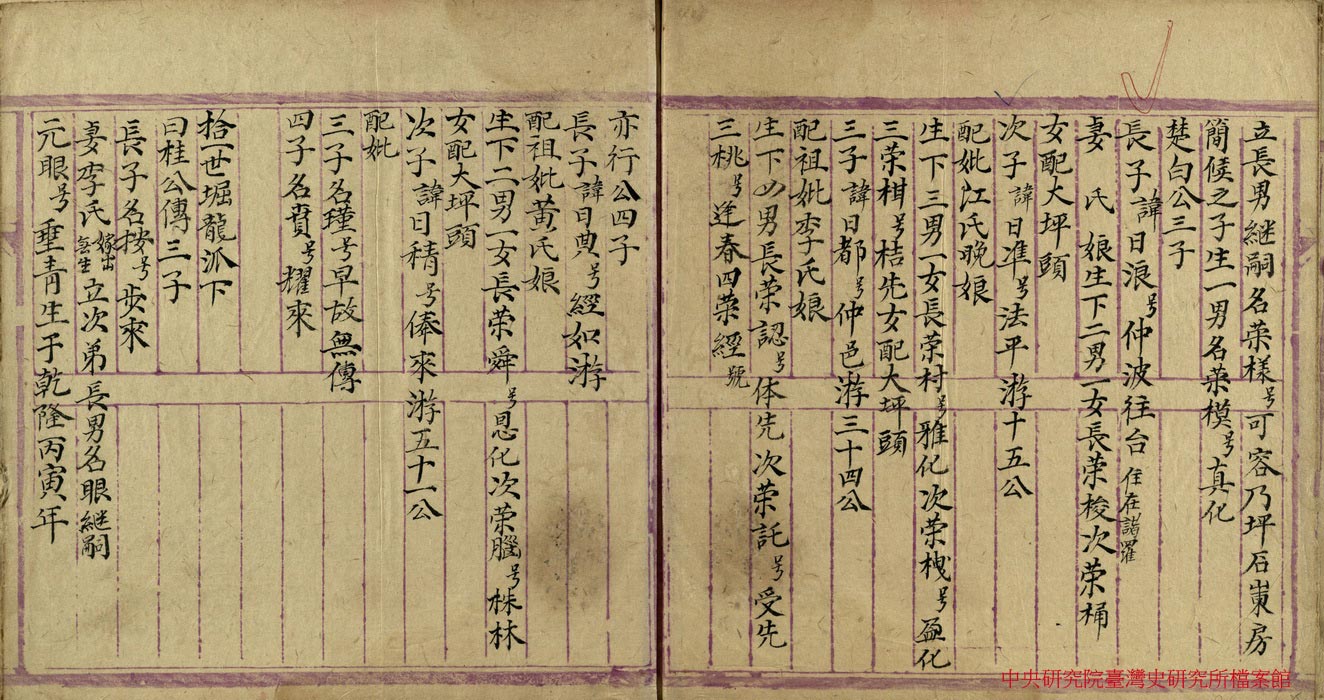 族譜未將女兒列入其中,僅見的女性,都是以妣(妻、母)的身分,作為夫家家族成員,在族譜中取得永遠的歸屬。