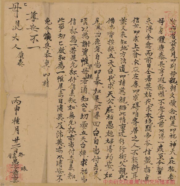 1896年外高厝許珠給母親的家書